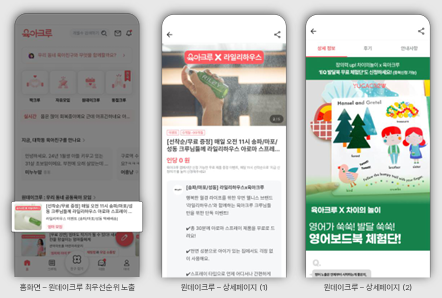 오늘 하루 육아 일상을 재미있게! 원데이크루 이벤트 형태로 우리 브랜드와 제품의 상세페이지를 구성하고, 육아크루 앱 전반에 주력으로 노출되는 것이특징인 상품입니다. 앱내 커뮤니티 및 육아크루 SNS에서 자연스러운 바이럴 확산이 이루어집니다.