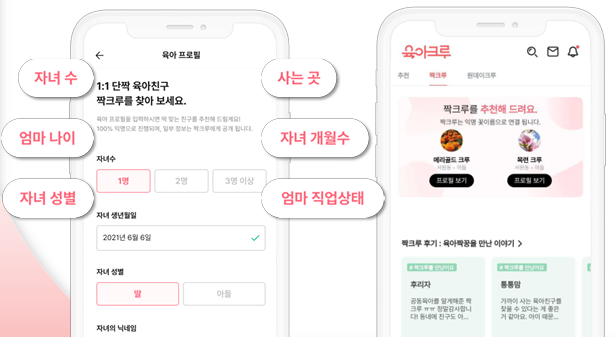엄마들이 동네 육아친구를 만나는 앱 육아크루 친구 65%가 오프라인 만남까지 이어지는 앱